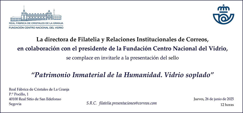 En un emotivo acto celebrado esta mañana en la Real Fábrica de Cristales de La Granja, Correos ha presentado un nuevo sello dedicado al vidrio soplado, dentro de su serie Patrimonio Inmaterial de la Humanidad. Esta emisión especial busca visibilizar y rendir homenaje a una de las técnicas artesanas más antiguas y emblemáticas del trabajo en vidrio.
